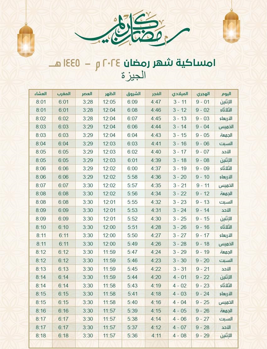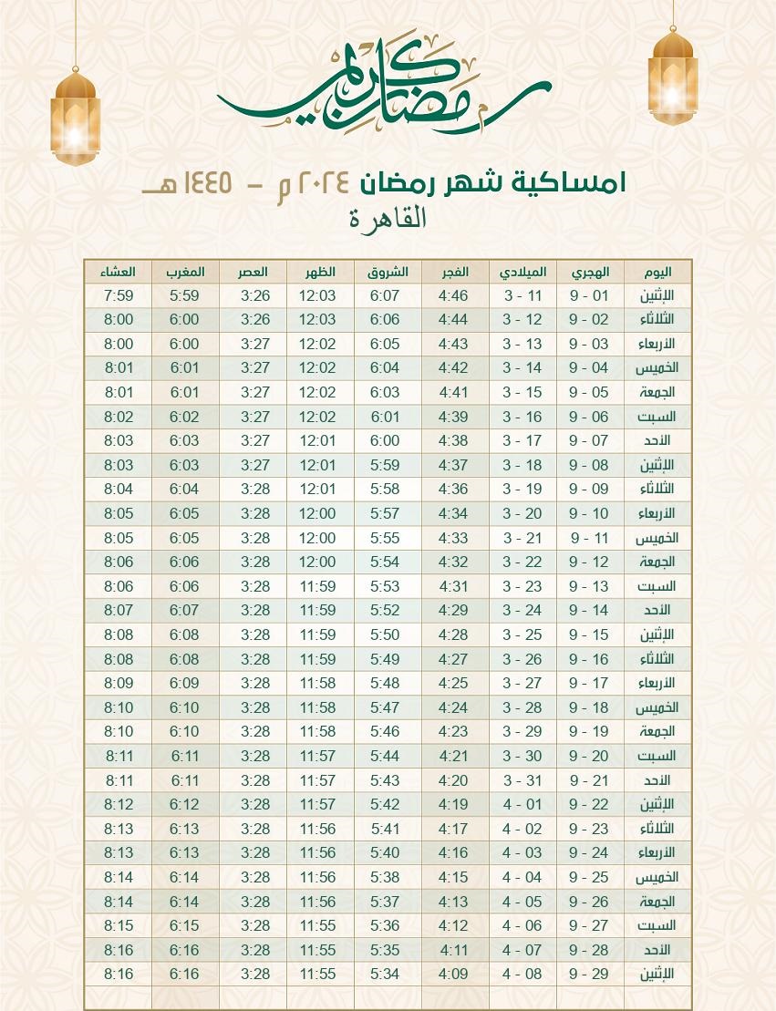 تفاصيل إمساكية رمضان 2024 القاهرة