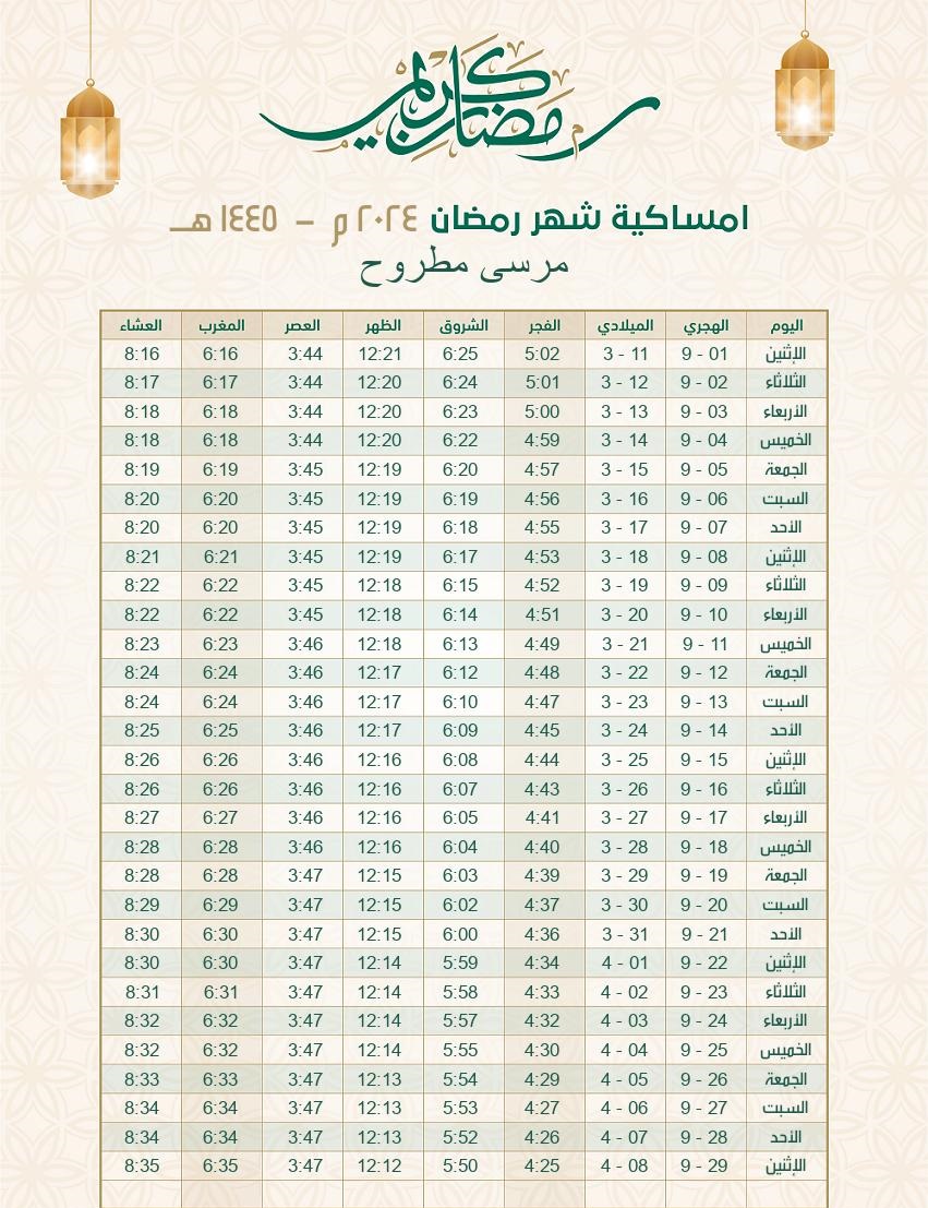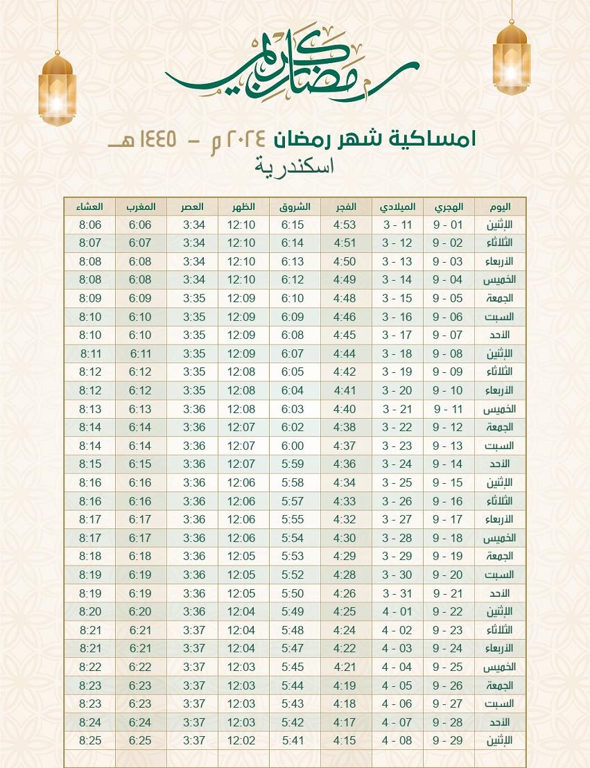 إمساكية رمضان 2024 الإسكندرية