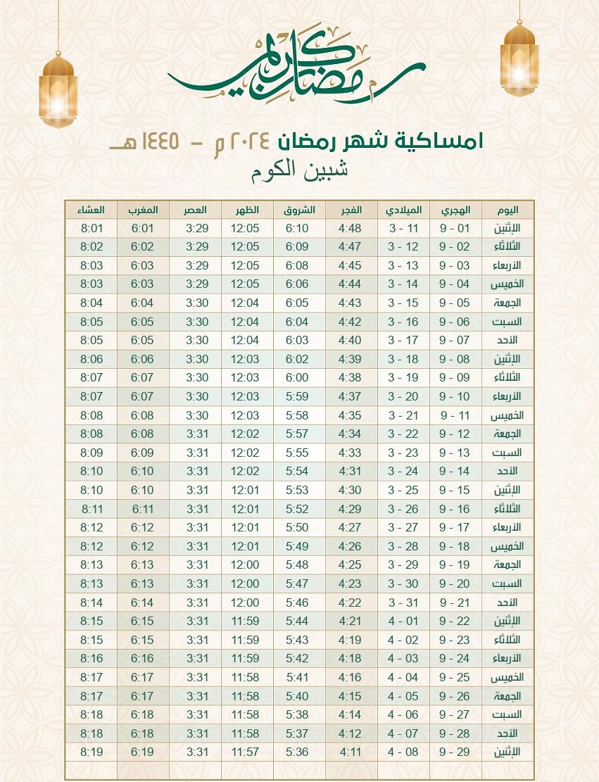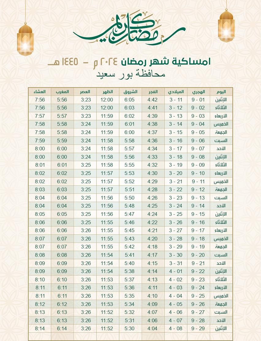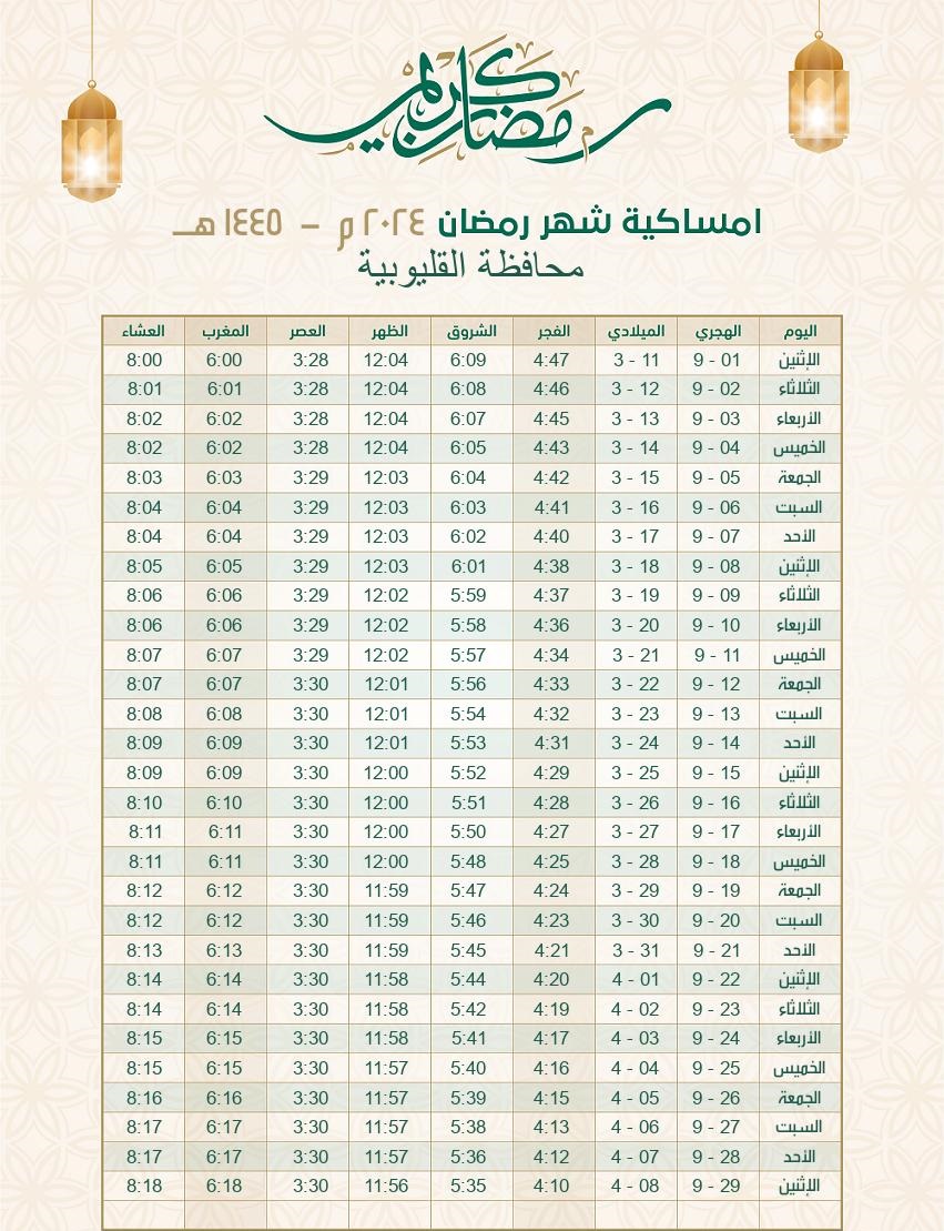 إمساكية رمضان 2024