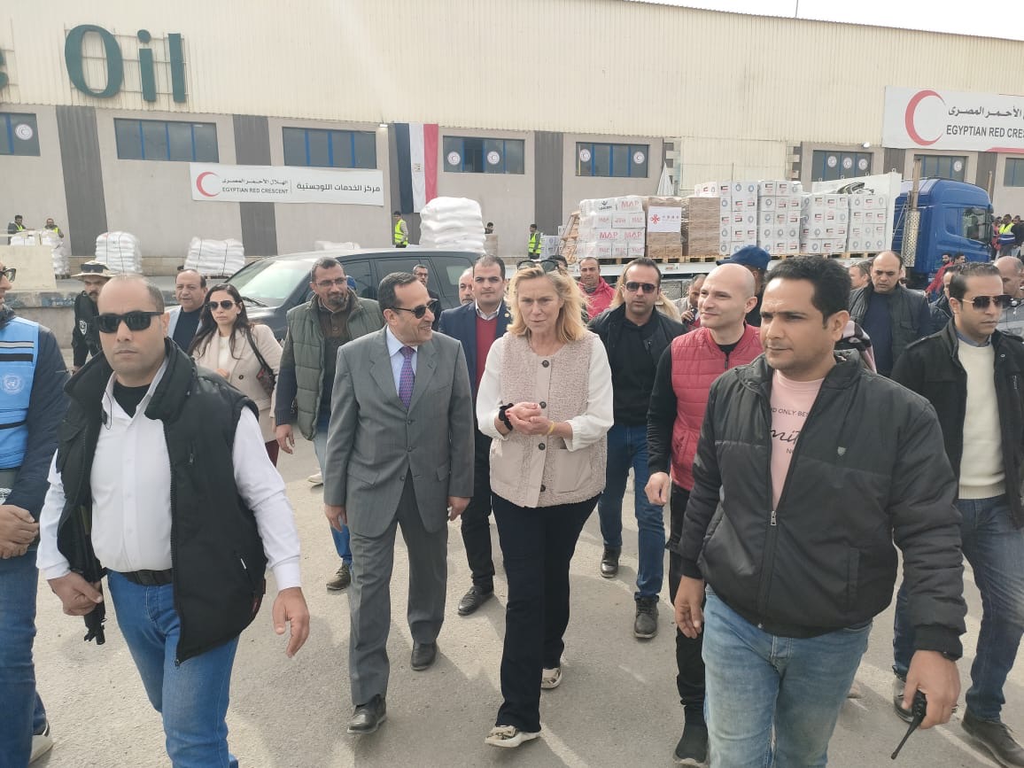 تفقدت سيجريد كاخ، كبيرة منسقي الأمم المتحدة للشئون الإنسانية وإعادة الإعمار في غزة والوفد المرافق لها، مخازن المساعدات اللوجستية الخاصة بقطاع غزة في مدينة العريش، برفقة اللواء دكتور محمد عبد الفضيل شوشة، محافظ شمال سيناء.