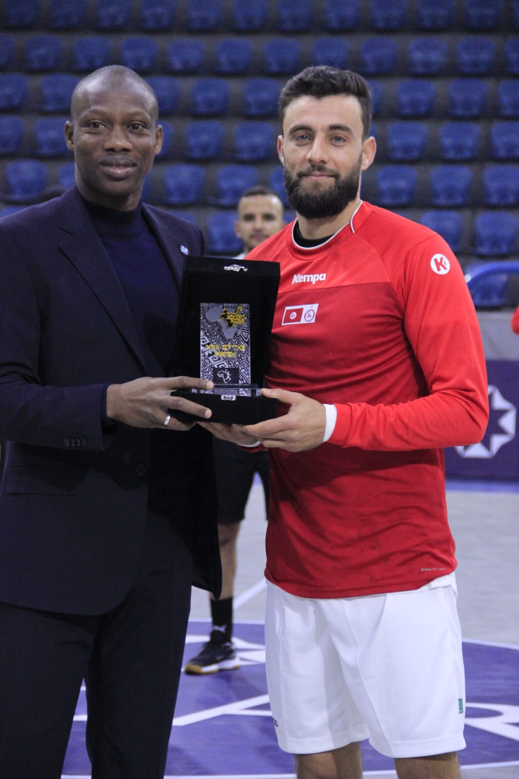 حصل عصام رزيق لاعب منتخب تونس على أفضل لاعب في مباراة فوز منتخب تونس لكرة اليد على نظيره الكيني بنتيجة 59-18 فى أول مشواره ببطولة كأس الأمم الإفريقية.