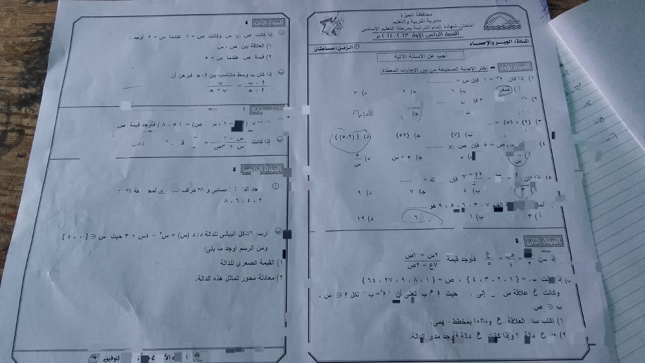 تداول جروب الغش الإلكتروني شاومينج عبر تطبيق تليجرام عددًا من الصور، زعم أنها خاصة بامتحان الجبر والإحصاء الذي يؤديه طلاب الشهادة الإعدادية 2024 بمحافظة الجيزة داخل اللجان الآن.