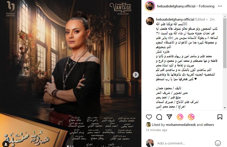 وتابعت هبة عبد الغني: حدوتة منسية، إن شاء الله يوم السبت 27ي ناير علي cbc، الساعة 8 مساءً، بطولة الأستاذة سوسن بدر، ومجموعة كبيره جدًا من الأخوات والأصدقاء النجوم اللي بتحبوهم.