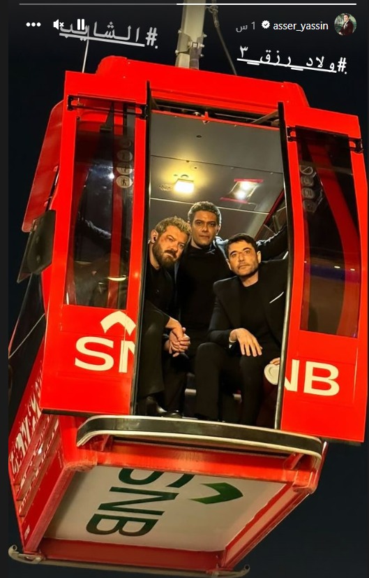 ونشر آسر ياسين عبر خاصية استوري على حسابه الشخصي على موقع تبادل الصور والفيديوهات إنستجرام، صورة تجمعه بالفنان أحمد عز والفنان عمرو سعد، ووجوههم ممتلئة بالكدمات وعلى متن الونش الطائر تلفريك، وعلق عليها: ولاد روق 3، الشايب.