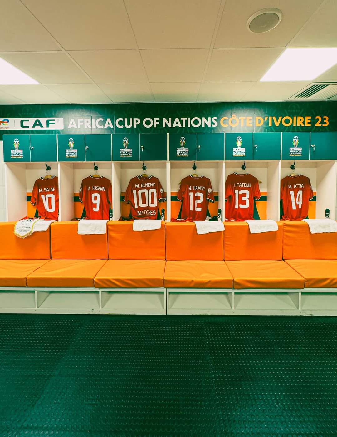 ونشر حساب منتخب مصر على فيسبوك مجموعة صور لغرفة ملابس منتخب مصر استعدادًا لمباراة غانا، وظهر التيشرت الاحتفالي بجوار تيشرت اللعب الخاص باللاعب محمد النني، حيث تم كتابة رقم 100 على ظهر القميص المشار إليه، وذلك احتفاءً بوصول النني للقائه رقم 100 بقميص منتخب مصر.