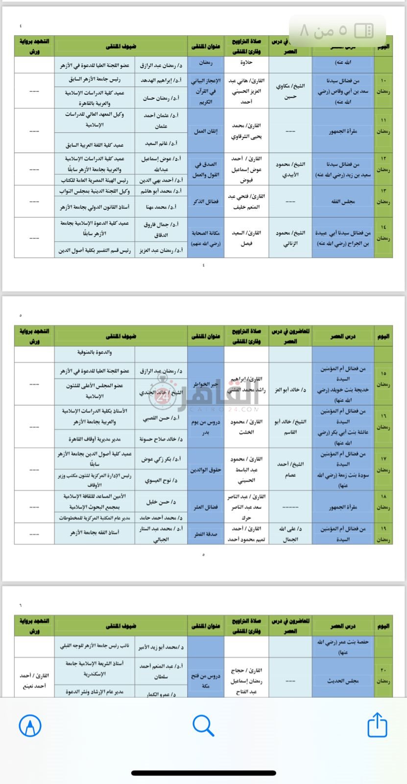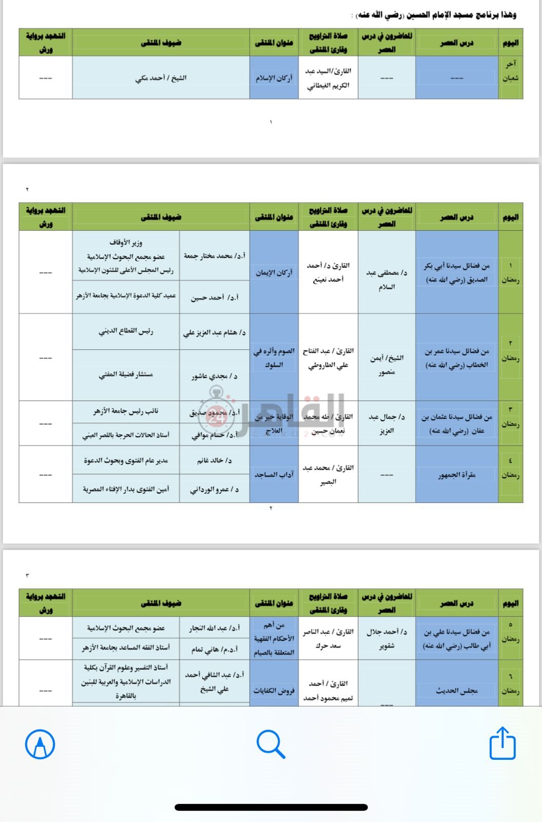 وحصل القاهرة 24 على المستند، الذي يوجد فيه أسماء العلماء والقراء الذين سيحيون أيام وليالي شهر رمضان بمسجد الإمام الحسين رضي الله عنه، حيث جاءت الأسماء على النحو التالي:
