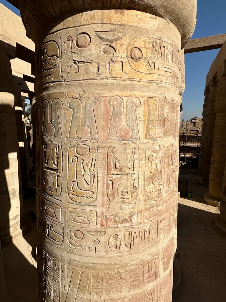 تجدر الإشارة إلى أن مشروع ترميم صالة الأعمدة الكبرى بمعابد الكرنك بدأ في يوليو 2021، حيث تم الانتهاء من المرحلة الأولي منه والتي شملت ترميم وإظهار النقوش الأصلية لعدد 28 عمود من أصل 134 عمود بالصالة.