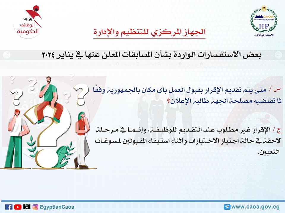 وأكد الجهاز المركزي للتنظيم والإدارة أنه سيتم رفض طلب التوظيف المقدم عبر بوابة الوظائف الحكومية في الحالات التالية: