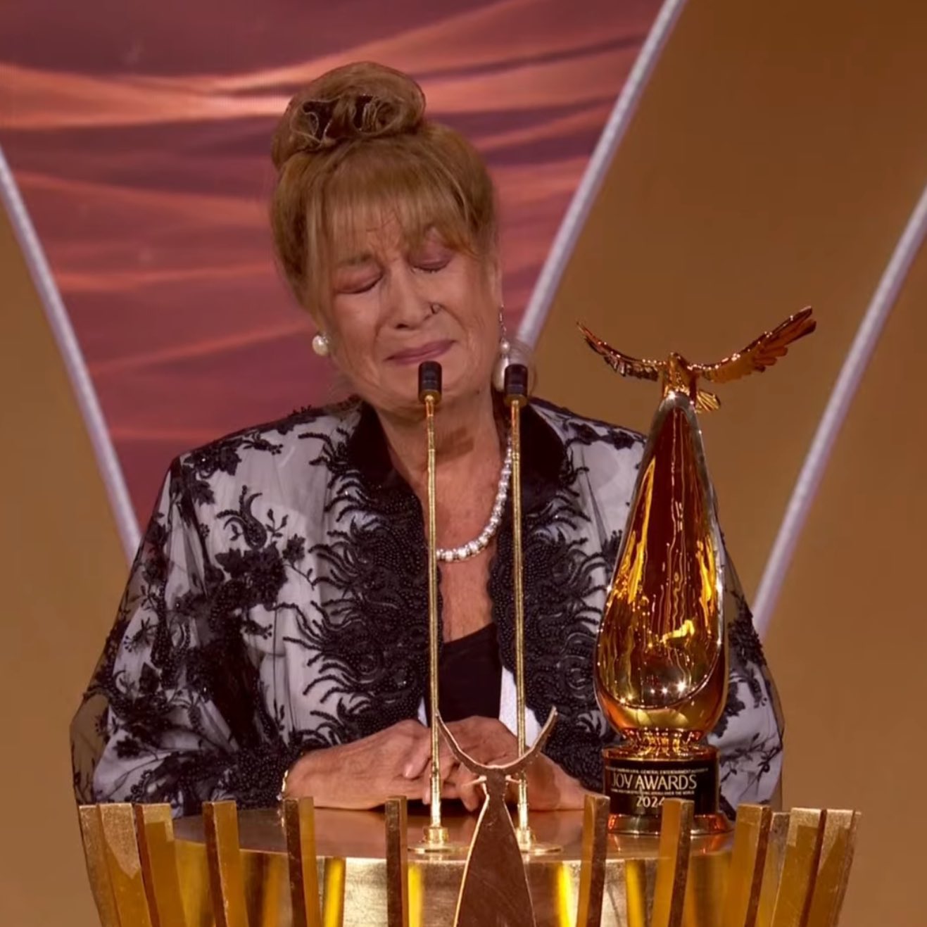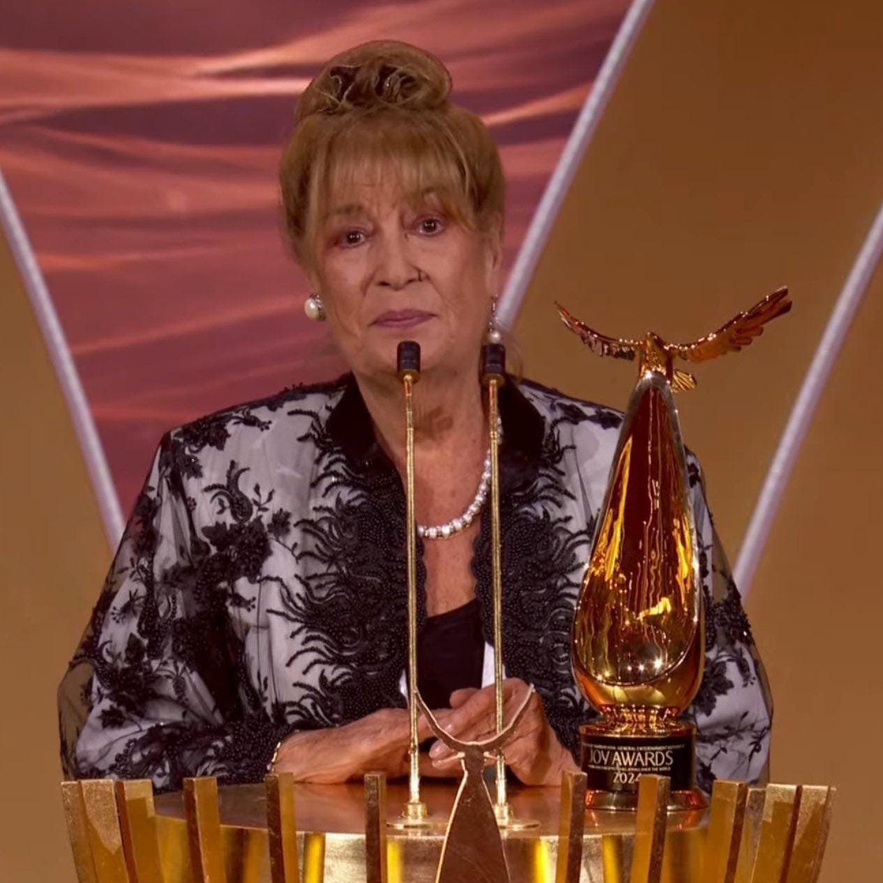 تأثرت الفنانة السورية منى واصف بعد تكريمها بـ إنجاز مدى الحياة، في حفل توزيع جوائز Joy Awards بالمملكة العربية السعودية، متمنية وجود والدتها وقت تكريمها.