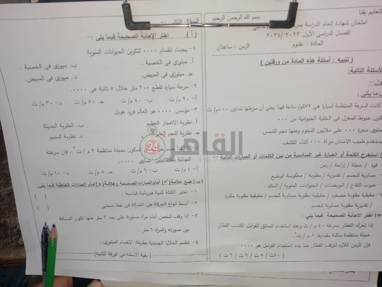تسريب امتحان العلوم للشهادة الإعدادية بقنا