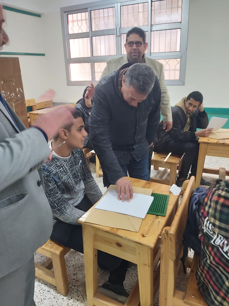 وأدى اليوم عدد 12 طالبا وطالبة من المكفوفين امتحان اللغة الأجنبية الأولى على فترتين ورقة أولى وورقة ثانية داخل لجنة المدرسة، وذلك بحضور الدكتور خالد الدقلة، مدير عام التعليم العام وحمدي سلام، مدير عام إدارة بندر دمنهور التعليمية، ورضا إسماعيل، مدير إدارة التربية الخاصة.