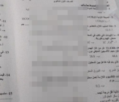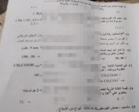 تداول أجزاء من امتحان الكيمياء للصف الأول الثانوي بالجيزة