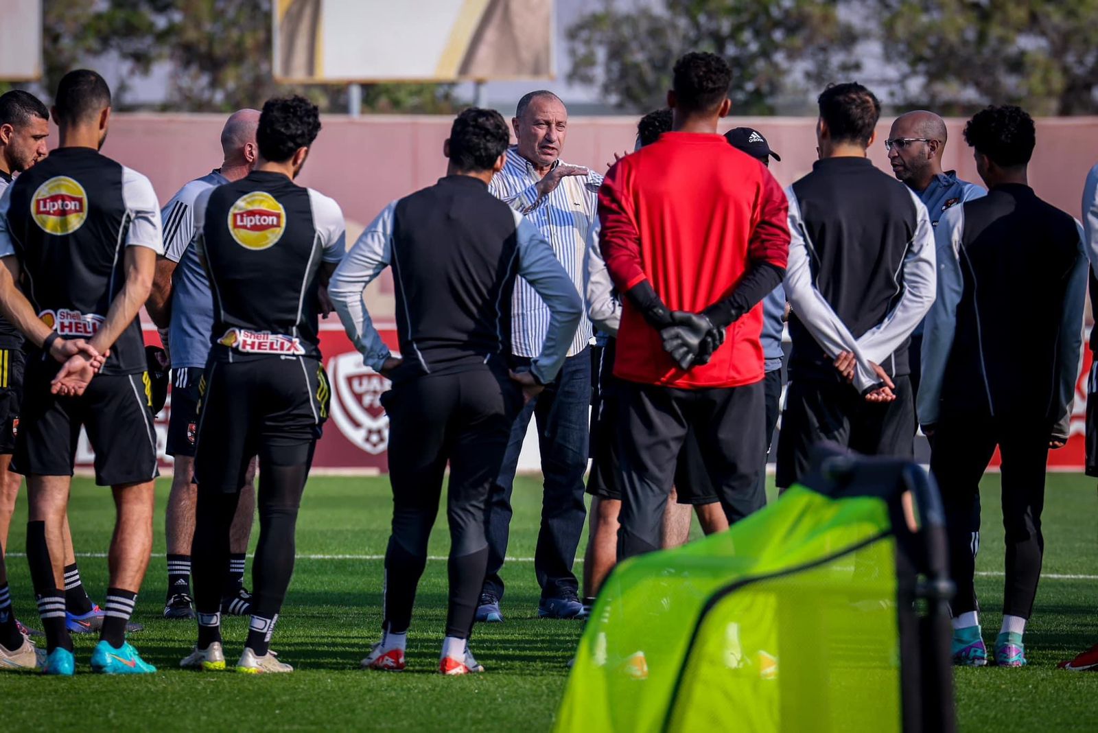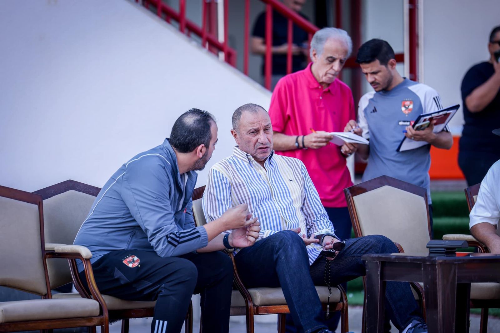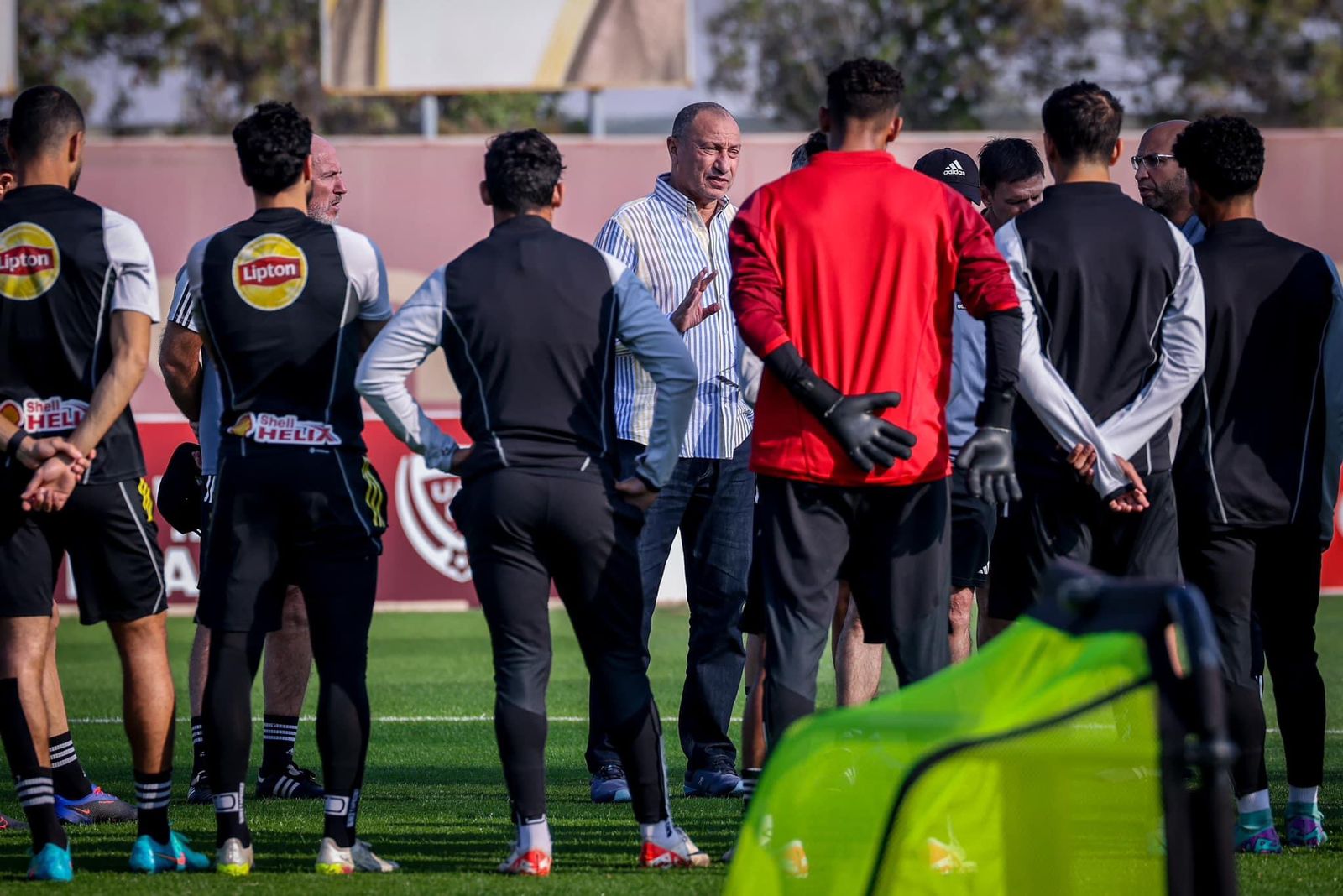 وفي سياق متصل، اجتمع محمود الخطيب، رئيس النادي الأهلي، والمشرف العام على الكرة، بلاعبي الفريق والجهاز الفني بقيادة مارسيل كولر قبل انطلاق مران الفريق اليوم.