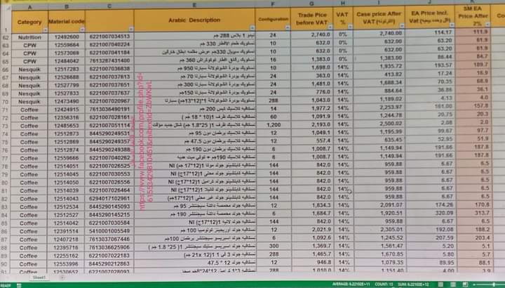وزاد سعر نسكافيه 3×1 شيكولاتة 18 جم إلى 1151 للكرتونة بزيادة 140 جنيها، وسعر نسكافيه 3×1 بندق 18 جم إلى 1151 للكرتونة بزيادة 140 جنيها، نسكافيه 3×1 ستيك عبوة 18 جم إلى 1151 للكرتونة بزيادة 140 جنيها.