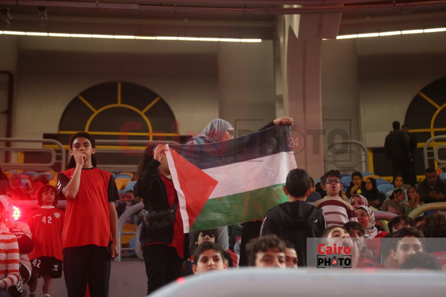 علم فلسطين يظهر في مدرجات صالة استاد القاهرة قبل مواجهة منتخب اليد أمام أنجولا
