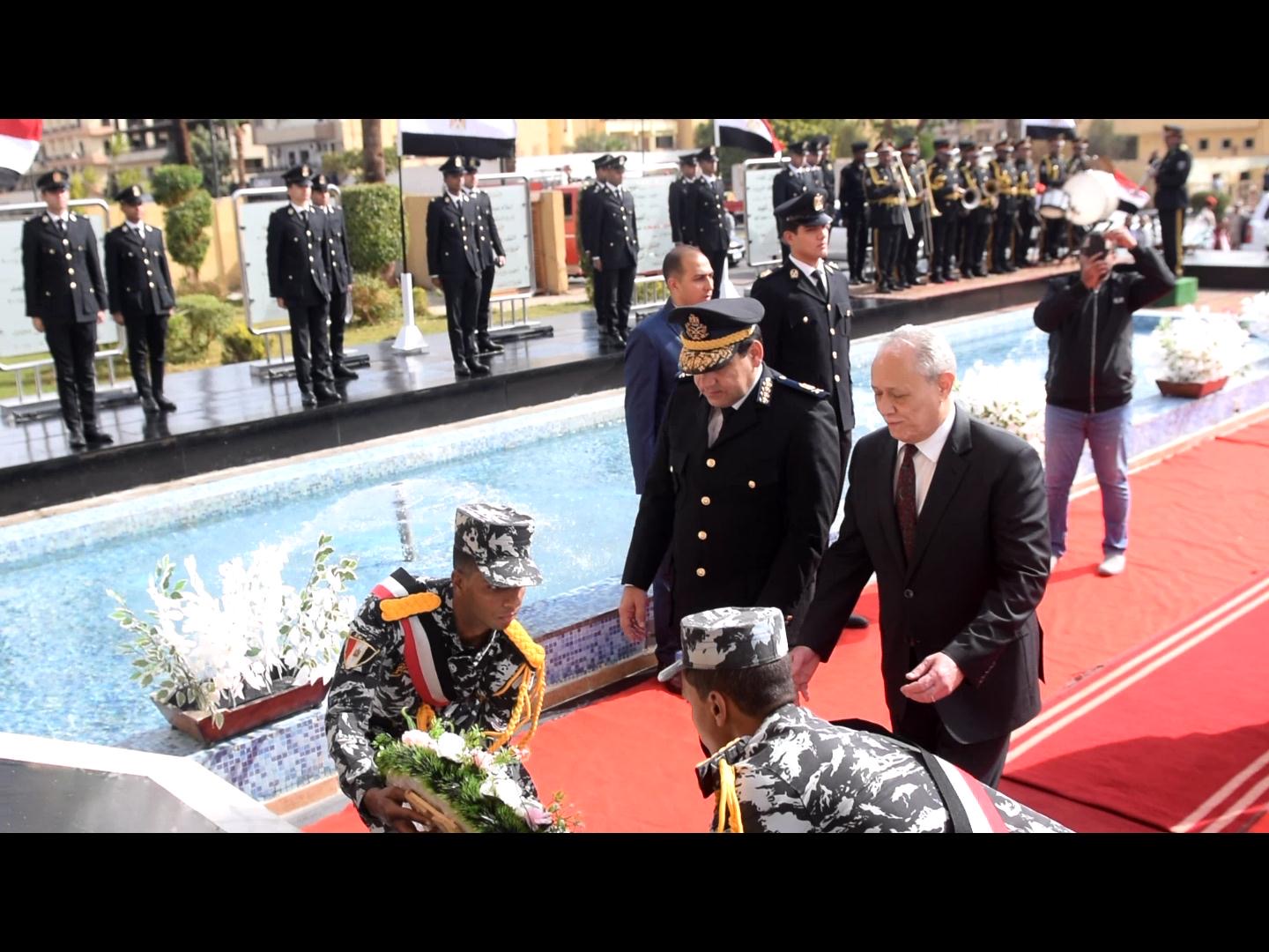 وعزفت الموسيقى العسكرية السلام الوطني لجمهورية مصر العربية وسلام الشهيد في تقليد عسكري أصيل للوفاء لشهداء مصر وما قدموه للوطن من بطولات وتضحيات، كما تمت قراءة الفاتحة ترحما على أرواح شهداء مصر الأبرار.