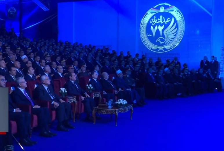 شاهد الرئيس عبد الفتاح السيسي، رئيس الجمهورية، منذ قليل، فيلما تسجيليًا حول أحداث يوم الجمعة 28 يناير 2011، خلال احتفالية وزارة الداخلية بعيد الشرطة.