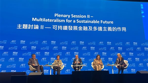 وجاءت الجلسة بعنوان التعددية من أجل مستقبل مستدام والتي تناقش أهمية التعاون متعدد الأطراف، وكيفية تسخير قوته لتحقيق التنمية المستدامة، وتأتي بمشاركة د. محمد سليمان الجاسر رئيس البنك الإسلامي للتنمية، د. ألكسندرا جور شرودر نائب المدير العام بالمديرية العامة للاستقرار المالي واتحاد الخدمات المالية وأسواق رأس المال بالمفوضية الأوروبية، ديلما روسيف رئيس بنك التنمية الجديد التابع لمجموعة بريكس، ويدير الجلسة كريستوفر هوي وزير الخدمات المالية والخزانة بهونج كونج.