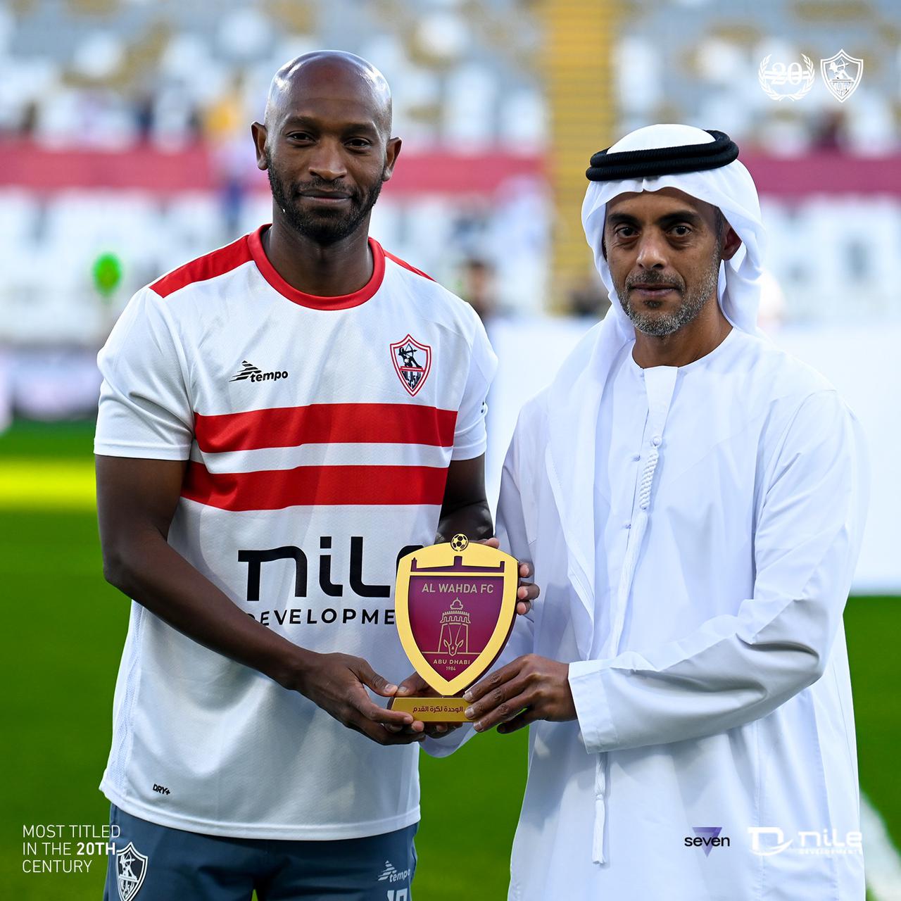 وفي سياق متصل، قام أحمد عوض العتيبة نائب رئيس مجلس إدارة شركة الوحدة لكرة القدم بتكريم محمود عبد الرازق "شيكابالا" قائد فريق الزمالك قبل انطلاق مباراة الأبيض أمام أم صلال القطري في لقاء تحديد المركز الثالث التي انطلقت على ستاد آل نهيان.