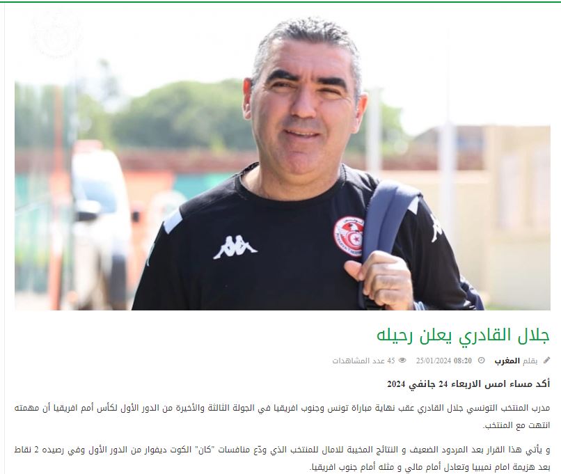 قال موقع فوت 24، إن النسور غادرت أمم إفريقيا من الباب الصغيرـ مشيرة إلى أن مهمة جلال القادري مع منتخب تونس قد انتهت.