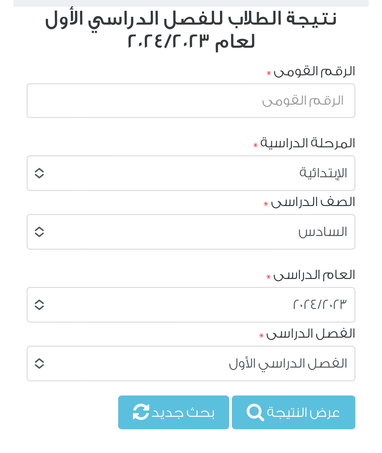 - الصف الدراسي: وهنا يختار الطالب نتيجة الصف السادس.
