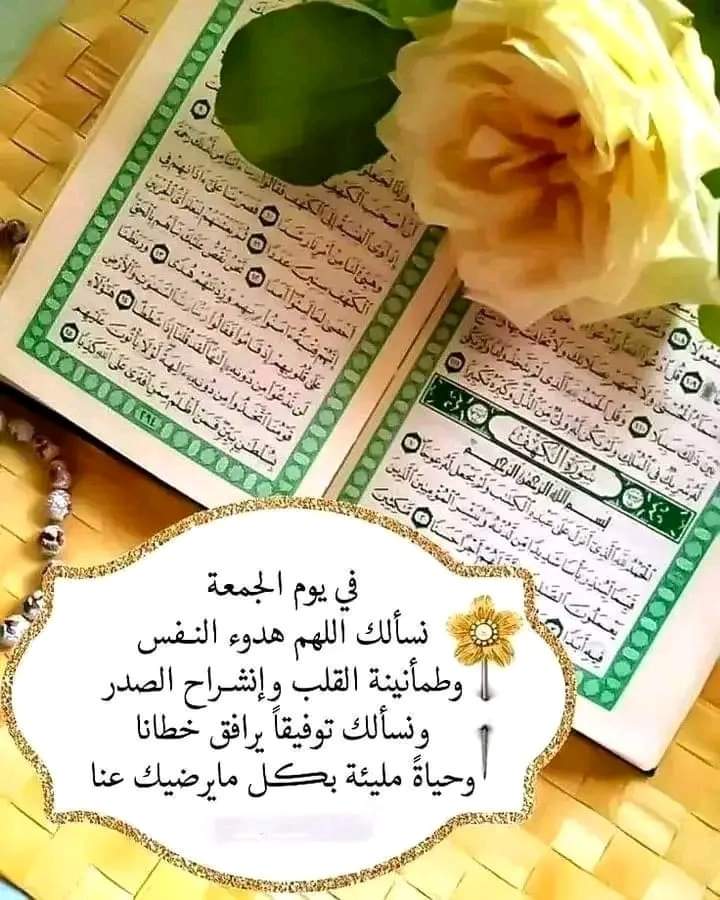 - في صباح يوم الجمعة اللهم امسح عنا اوجاعنا ونور ظلمات ليآلينآ، واسقنا الفرح، وارزقنا من كلّ مداخل الخير رزقًآ حلالا مباركًا.