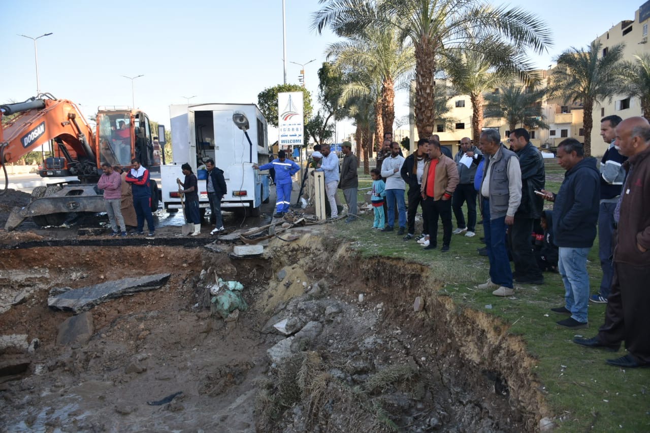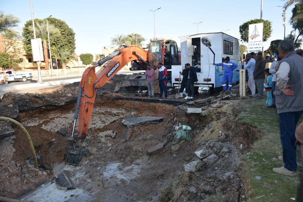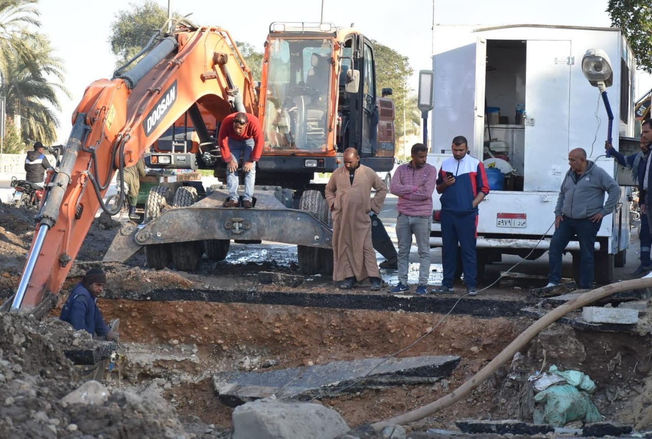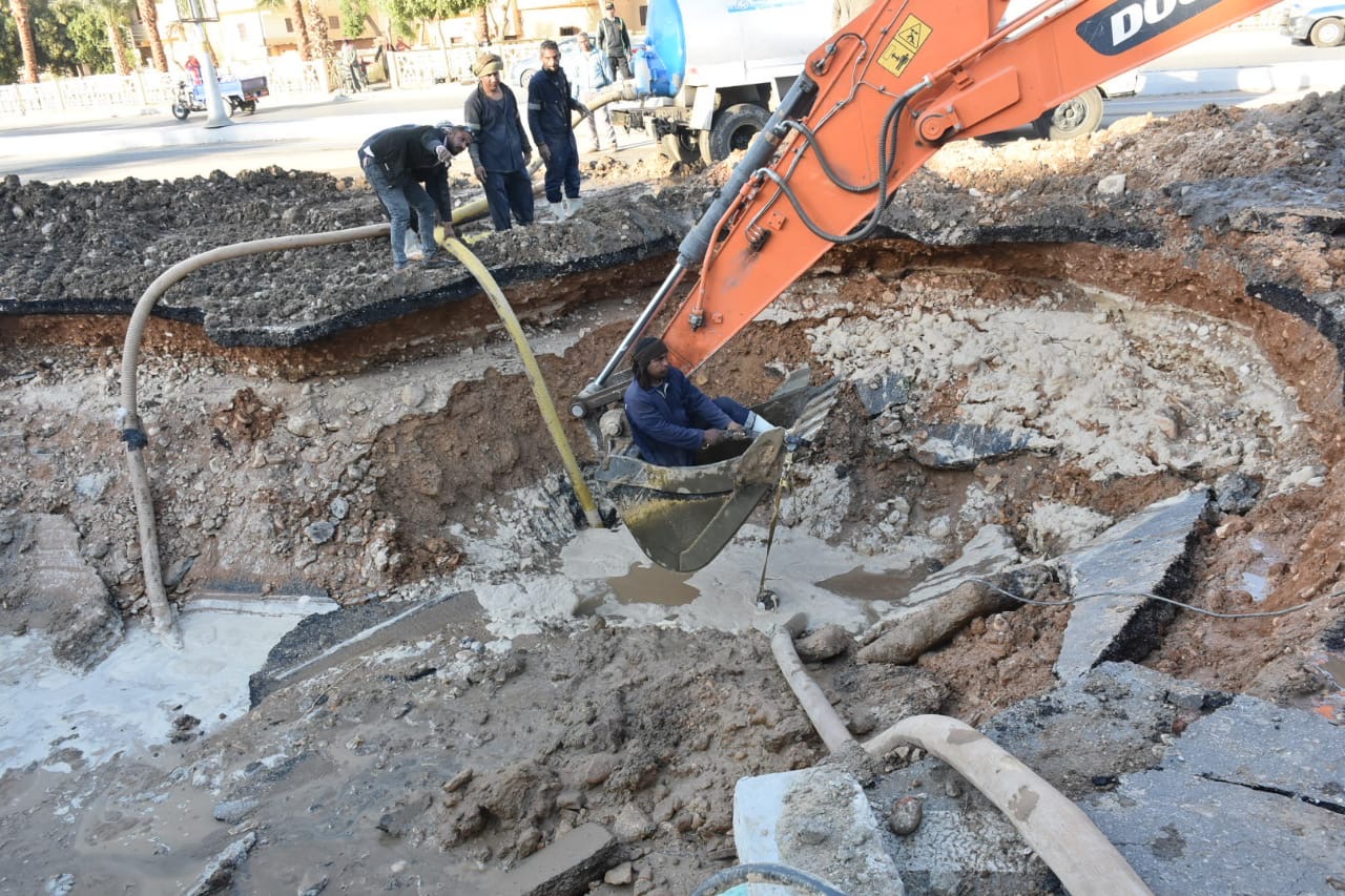 كسر ماسورة يؤدي لقطع المياه في الكرنك بالأقصر