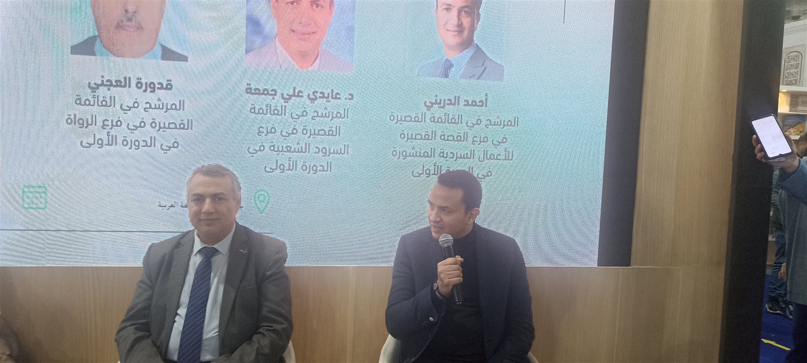 شارك في الندوة الكاتب والإعلامي أحمد الدريني المرشح للقائمة القصيرة في فرع القصة القصيرة للأعمال السردية المنشورة في الدورة الأولى، والدكتور عايدي علي جمعة، المرشح في القائمة القصيرة في فرع السرود الشعبية في الدورة الأولى، وقدورة العجني، المرشح في القائمة القصيرة في فرع الرواة في الدورة الأولى وأدار الندوة الروائي وليد علاء الدين.