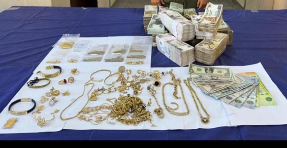عقب تقنين الإجراءات تم ضبطهم، وبحوزتهم 55 كيلو جرام من أحجار الكوارتز، و15.346 كيلو جرام ذهب سبائك ومشغولات، و282 جرام ذهب صينى، 76 جرام فضة، 4 كيلو جرام سبائك لخام النحاس، عدد من الأدوات المستخدمة فى تشكيل وسبك ومعايرة الذهب - كميات من مواد كيميائية المستخدمة فى تشغيل المعادن النفيسة - سيارة ربع نقل، ومبالغ مالية عملات محلية وأجنبية.