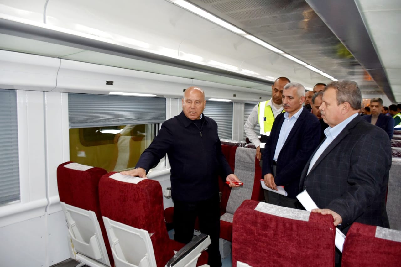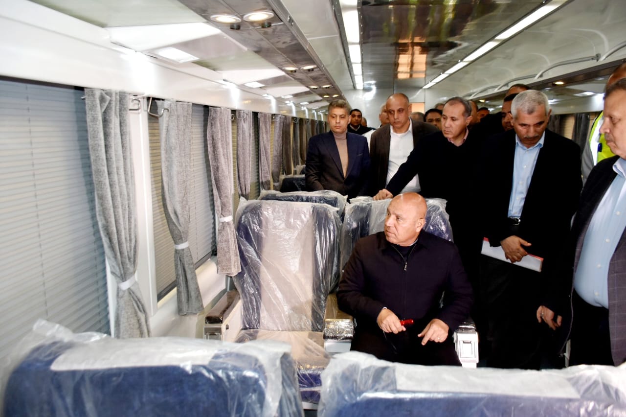 بدأت الجولة بتفقد الوزير لأحد القطارات الاسباني الجاري إعادة تأهيلها وتطويرها وتحديثها بالكامل حيث يتم تغيير وتجديد كافة دواخل العربة من مقاعد وارضيات وشبابيك وستائر وتكييف بالإضافة إلى دهان العربة من الخارج بشكل مميز، حيث شاهد الوزير عربات من الدرجة الأولى والثانية التي تم الانتهاء منها، وذلك في إطار مشروع رفع كفاءة عدد 150 عربة أسباني مكيفة وحيث يتكون كل قطار أسباني مكيف من 11 عربة بواقع عدد 4 عربة درجة أولى – عدد 6 عربات درجة ثانية – عدد 1 عربة بوفية ودرجة ثانية، وتم الانتهاء من 4 قطارات بإجمالي 44 عربة منهم، وتم دخولهم الخدمة وجاري الانتهاء من القطار الخامس على أن يتم إدخال باقي القطارات تباعا بعد إعادة تأهيلها وتطويرها وتحديثها بالكامل لتقديم أعلى مستويات الخدمة لجمهور الركاب.