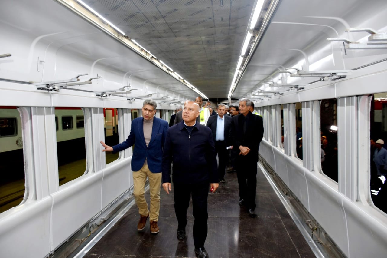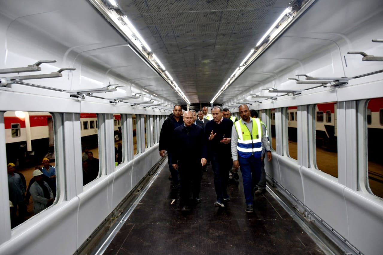 وزير النقل يتابع أعمال تطوير وتصنيع عربات قطارات السكك الحديدية بورش كوم أبو راضي