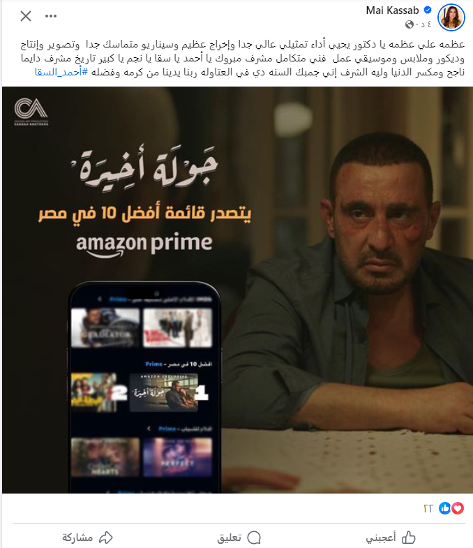 مي كساب تشيد بـ أحمد السقا في جولة أخيرة: أداء تمثيلي عالي وتاريخ مشرف