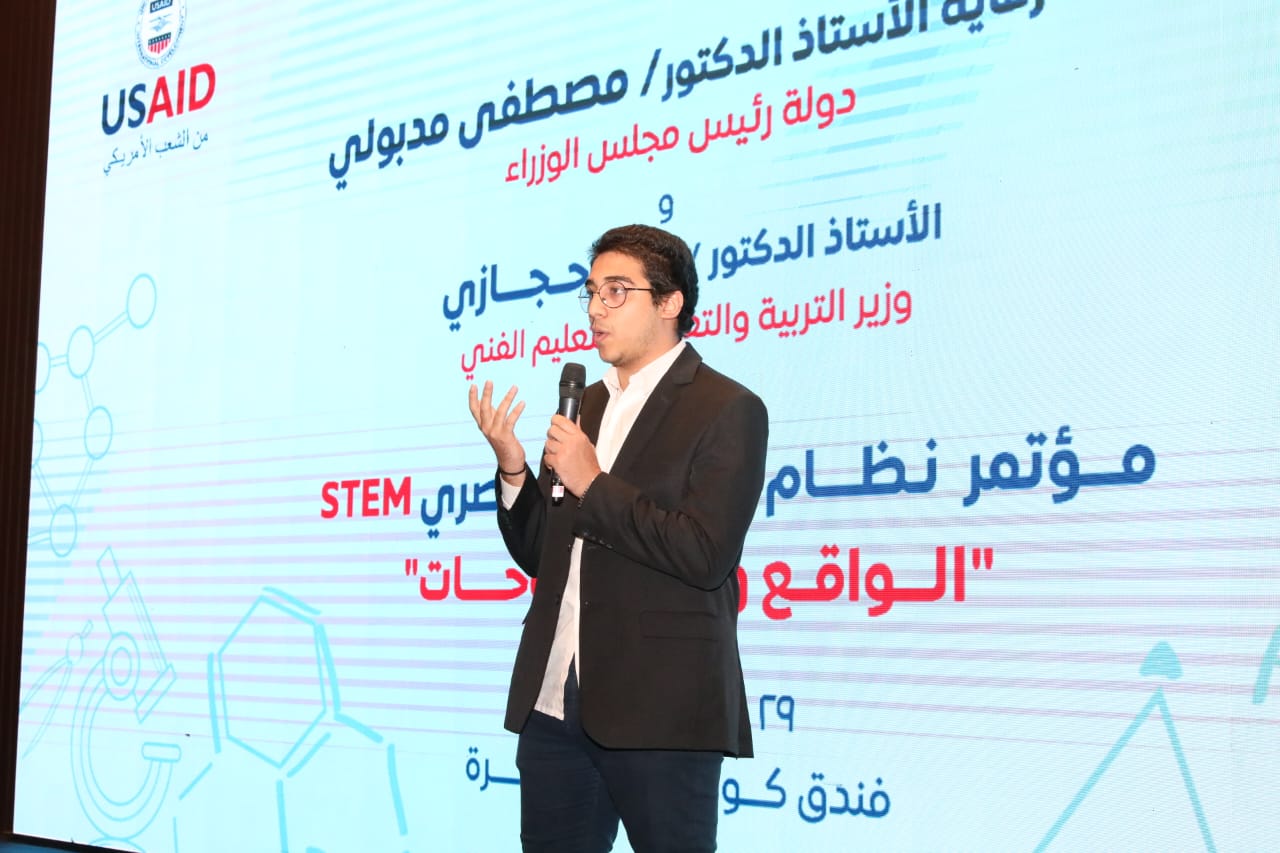 استعرض عدد من طلاب مدارس المتفوقين للعلوم والتكنولوجيا stem تجربتهم في الدراسة بهذه المدارس خلال موتمر نظام التعليم المصري stem، بحضور الدكتور رضا حجازي وزير التربية والتعليم والتعليم الفني، والدكتور أيمن عاشور وزير التعليم العالي، والدكتور هاني سويلم وزير الموارد المائية وعدد من قيادات وزارة التربية والتعليم.