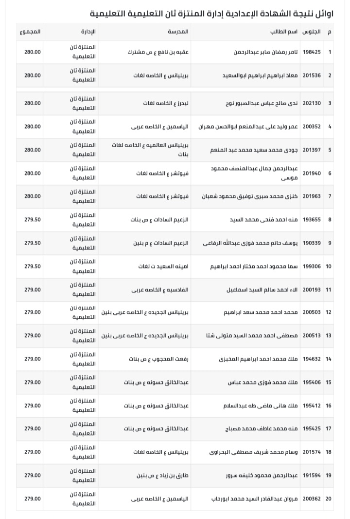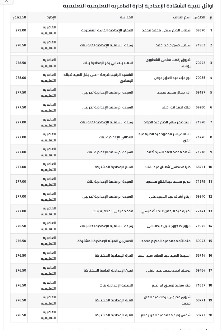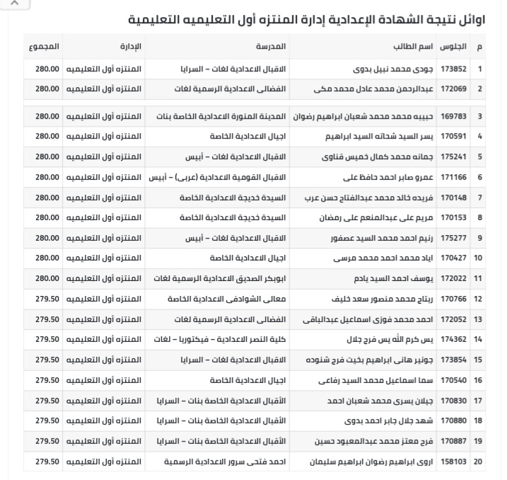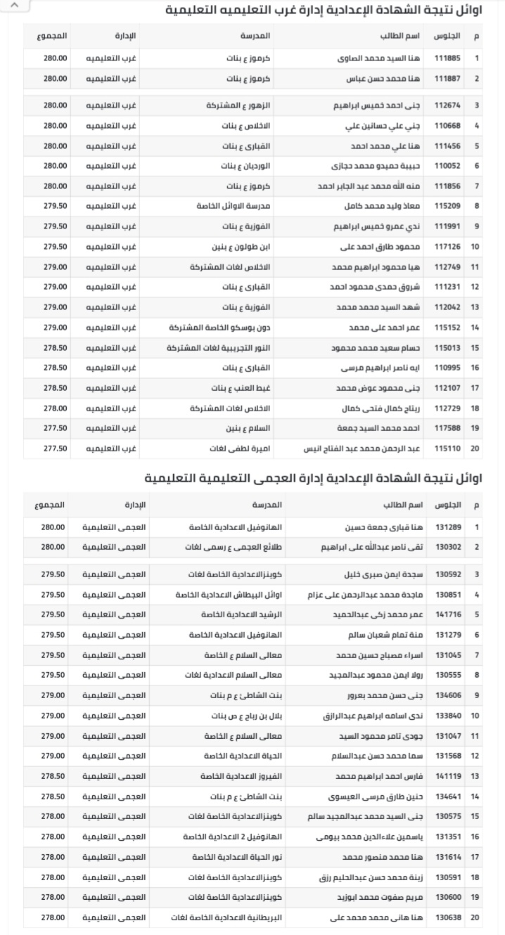 أوائل الشهادة الإعدادية محافظة الإسكندرية 2024