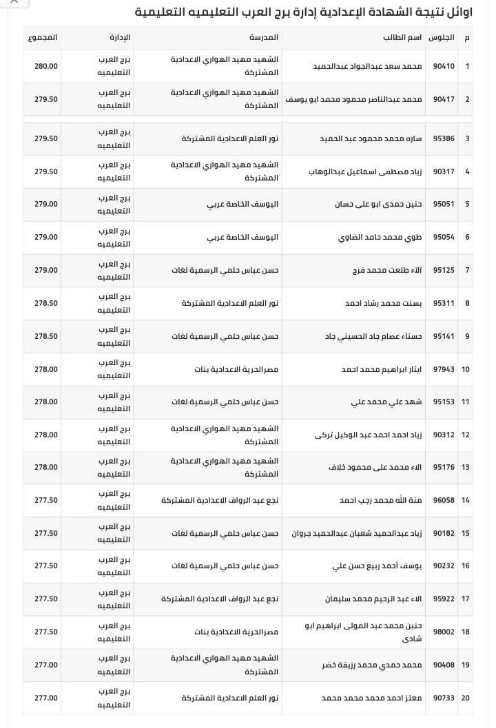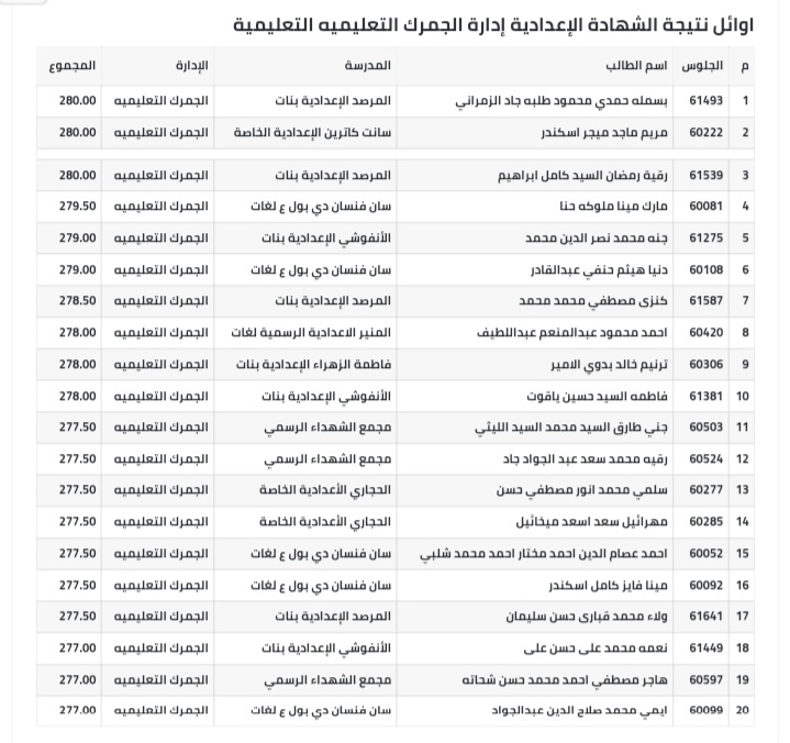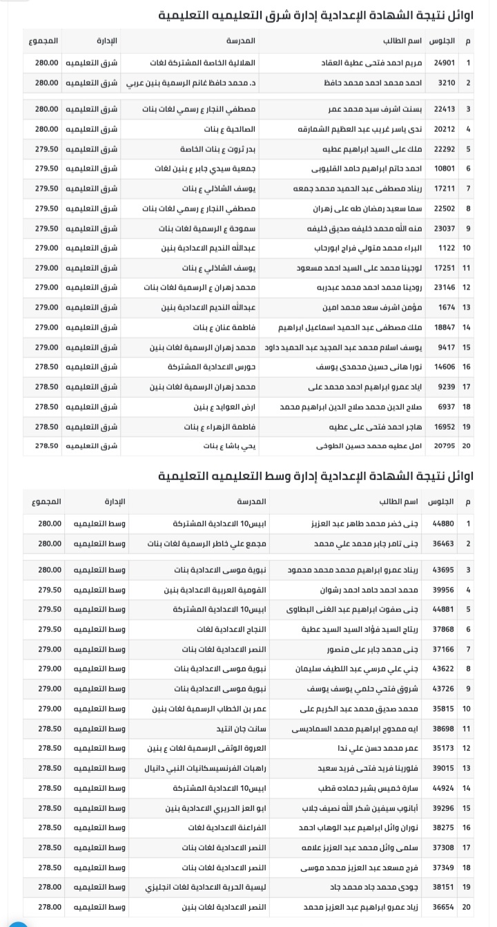 نتيجة الشهادة الإعدادية محافظة الإسكندرية برقم الجلوس