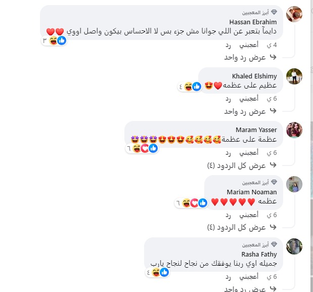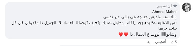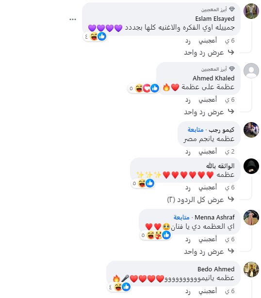 وجاءت تعليقات الجمهور على أغنية تامر حسني وزاب ثروت كالتالي: جميلة الفكرة والأغنية، عظمة على عظمة، دايمًا بتعبر على اللي جوانا، ربنا يوفقك من نجاح لـ نجاح، عظمة يا نجم مصر، طول عمرك بتعرف توصلنا إحساسك، شابوه ثروت على الجمال.