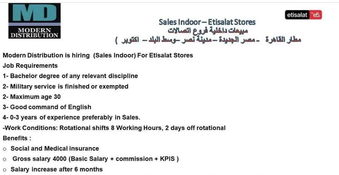 ويتمتع الموظف بالعمل 5 أيام وإجازة يومين مع راتب ثابت وتأمين طبي واجتماعي، في محافظات الجيزة والقاهرة والاسكندرية ومحافظات الدلتا والصعيد، ويمكن التقديم في مقر الشركة أو من هــــنــــا.