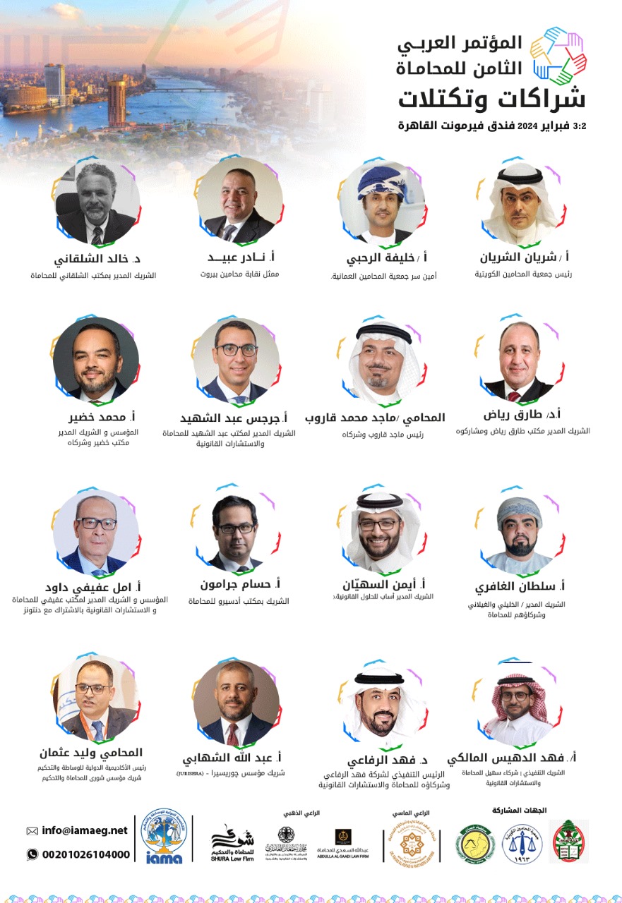 تستضيف القاهرة غدا أعمال المؤتمر العربي للمحاماة في نسخته الثامنة، والذي تنظمه الأكاديمية الدولية للوساطة والتحكيم (AIAM) في الفترة من 2 - 3 فبراير، بمشاركة عدد من الشخصيات العربية البارزة.