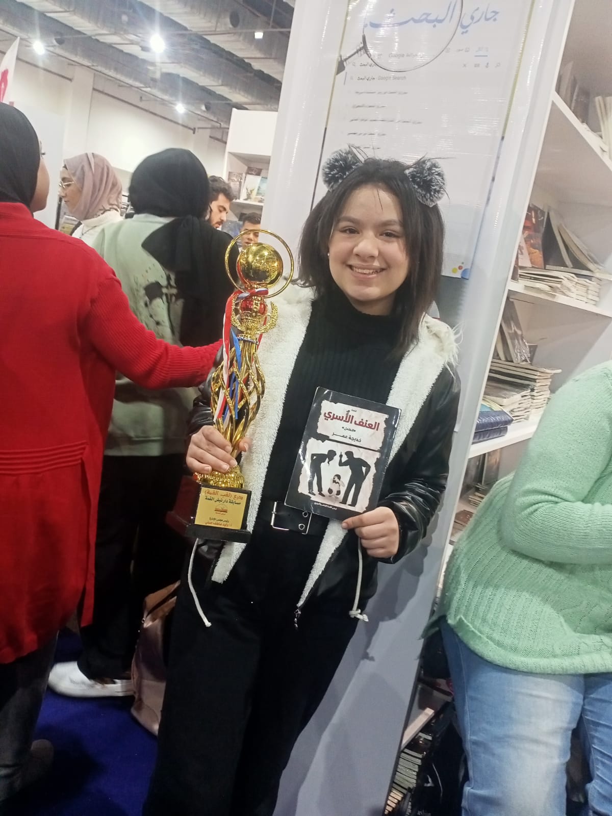 صاحبة الـ13 عامًا، طالبة مثالية على مستوى محافظة الجيزة، شاركت في معرض الكتاب هذا العام، بكتابها العنف الأسري، وقالت لـ القاهرة 24: الفكرة جتلي لإني كنت عايزة أعمل حاجة مختلفة ومحدش عملها.. معظم الأطفال المشردين في الشوارع نتيجة للعنف الأسري، والكتاب أخذ مني 3 أشهر.