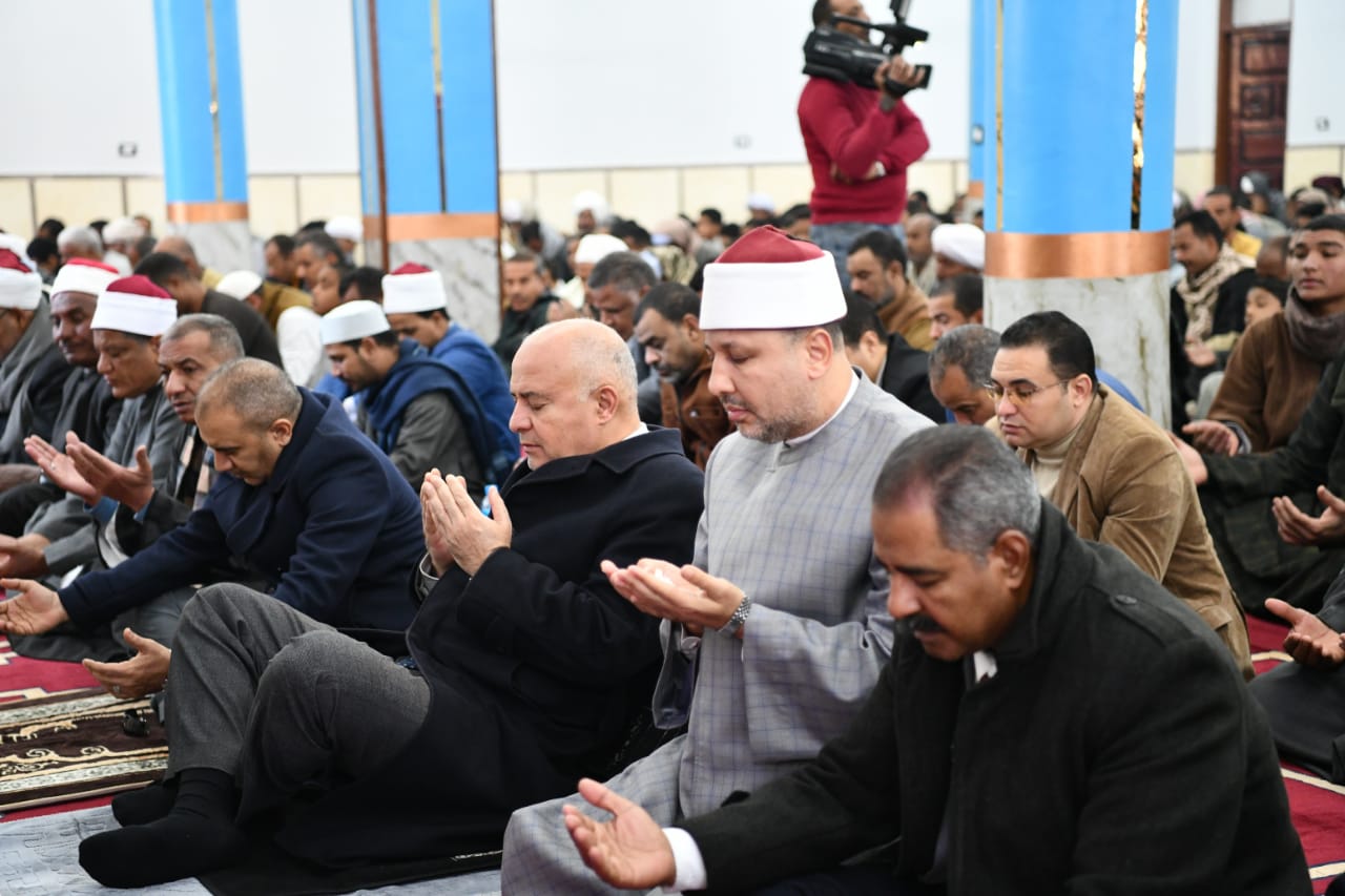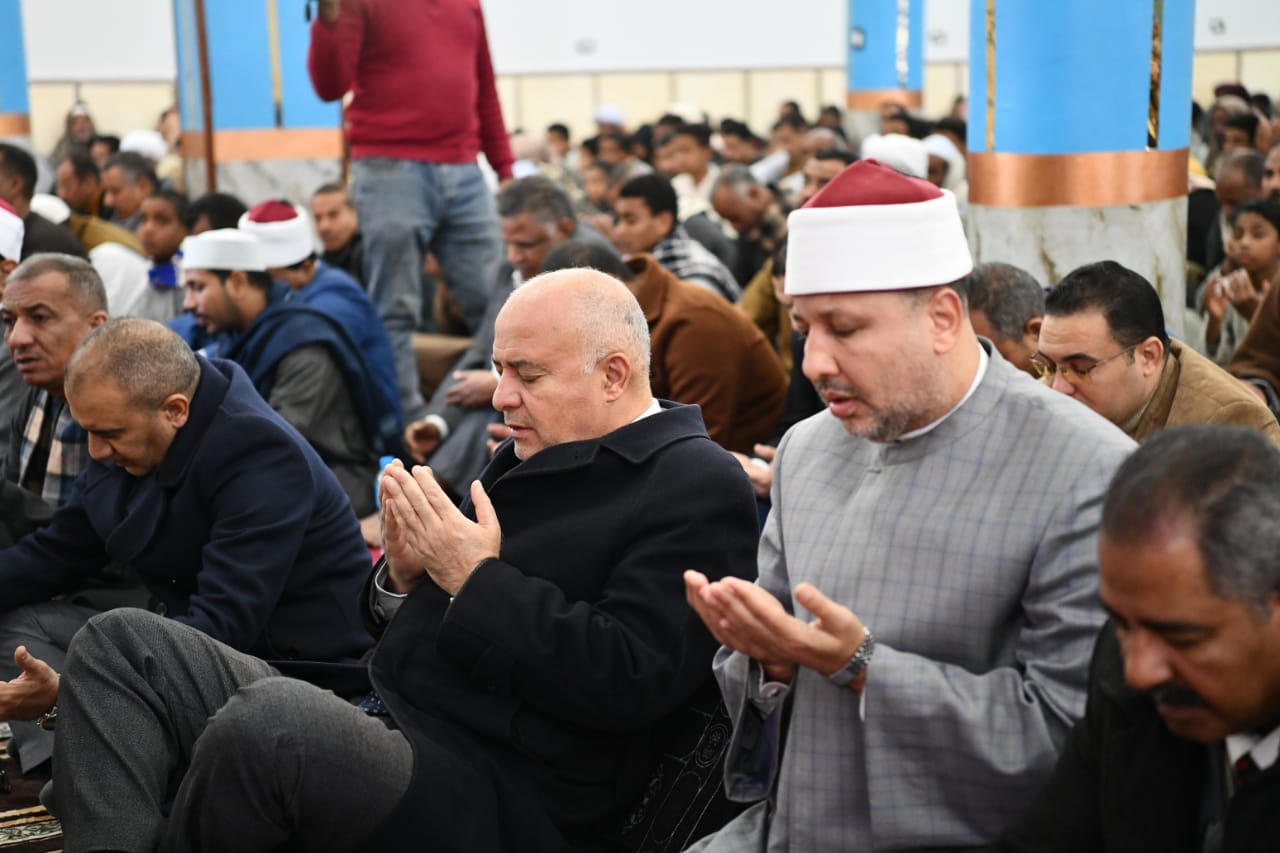واستمع محافظ قنا والمصلون إلى خطبة الجمعة تحت عنوان من دروس الإسراء والمعراج الفرج بعد الشدة.