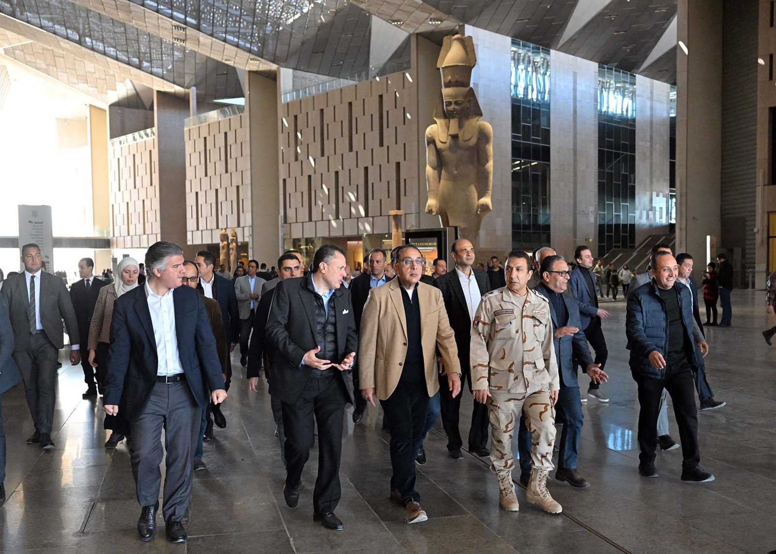واستهل رئيس مجلس الوزراء جولته، بالإعراب عن سعادته الكبيرة لقرب الانتهاء بشكل كامل من هذا الصرح الثقافيّ الحضاري الهائل، لنقدم للعالم أجمع تحفة فنية معمارية مبهرة تضم كنوز الحضارة المصرية القديمة.