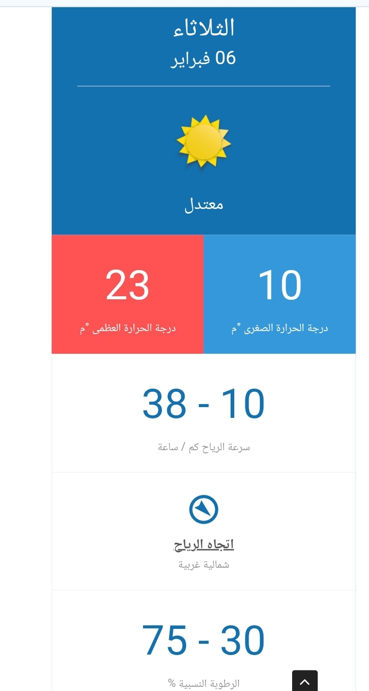 - النويصيب 21 درجة نهارا لتصل إلى 8 درجة ليلا.