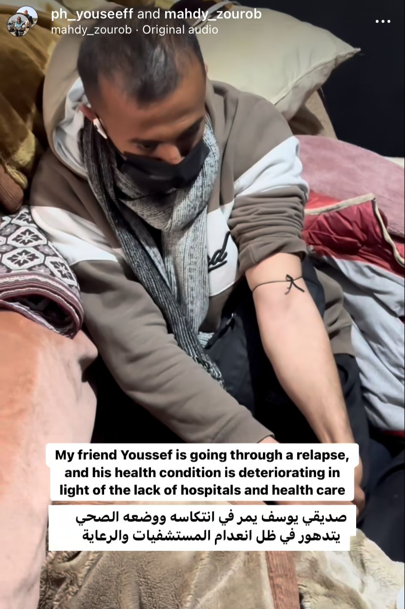 وكشف المصور الصحفي يوسف أبوسعيد، في منشور له عبر حسابه بموقع تبادل الصور والفيديوهات إنستجرام، مستجدات حالته الصحية، مستغيثًا من أجل مغادرة غزة والسفر خارج فلسطين لتلقي العلاج.