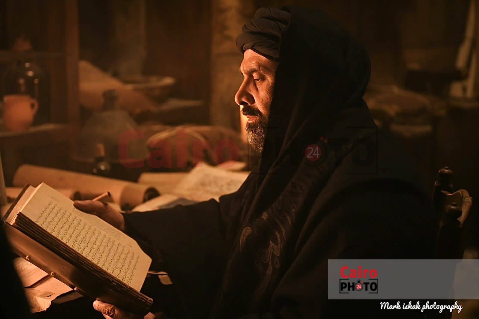 القاهرة 24 حصل على صور من كواليس تصوير كريم عبد العزيز لمسلسل الحشاشين وهو يقرأ أحد الكتب، وظهرت الفنانة ميرنا نور الدين بالحجاب ودون مكياج لأول مرة.