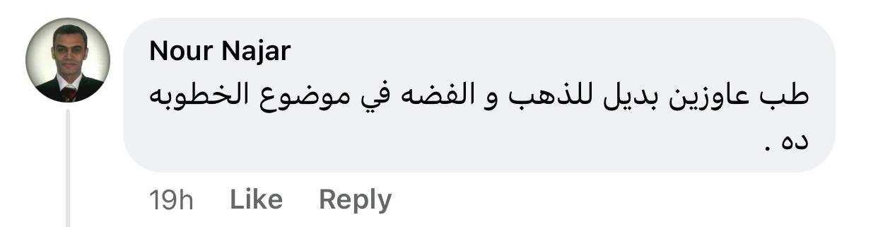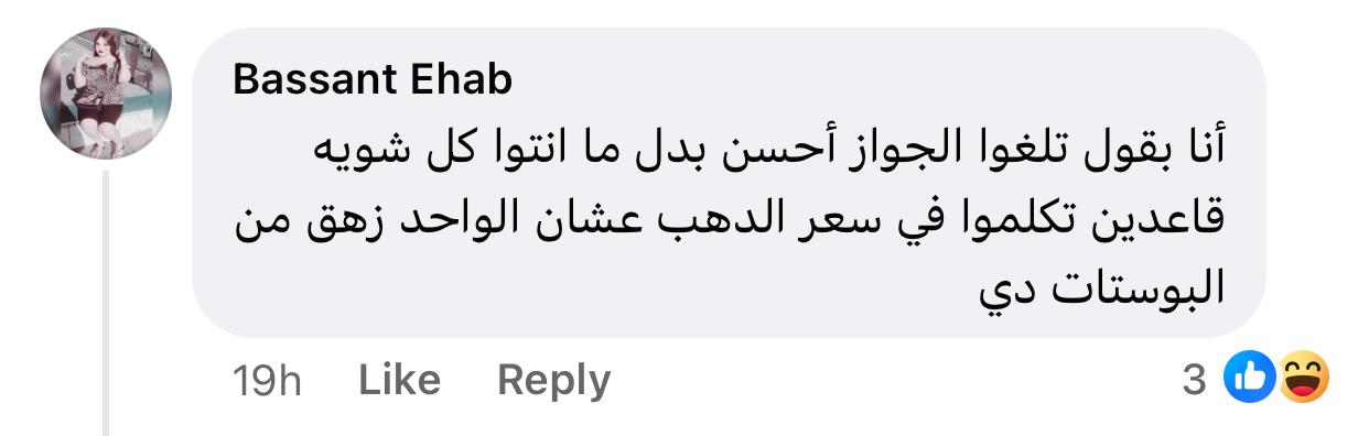 وعقب أحد المتفاعلين مع تلك المنشورات قائلًا: أنا بقول تلغوا الجواز أحسن.. بدل ما أنتوا كل شوية قاعدين تتكلموا في سعر الدهب عشان الواحد زهق من البوستات دي، ومستخدم أخر يكتب: الشبكة مش كل حاجة ياما بنات باعت شبكتها عشان الجوازة تتم، ويضيف متفاعل آخر: طب عايزين بديل للذهب والفضة في موضوع الخطوبة ده، ويقول آخر: مش لازم دهب مهو كدة كدة بيتباع، وآخر: ولا عارفين نقع في الغرام ولا معانا للجرام.