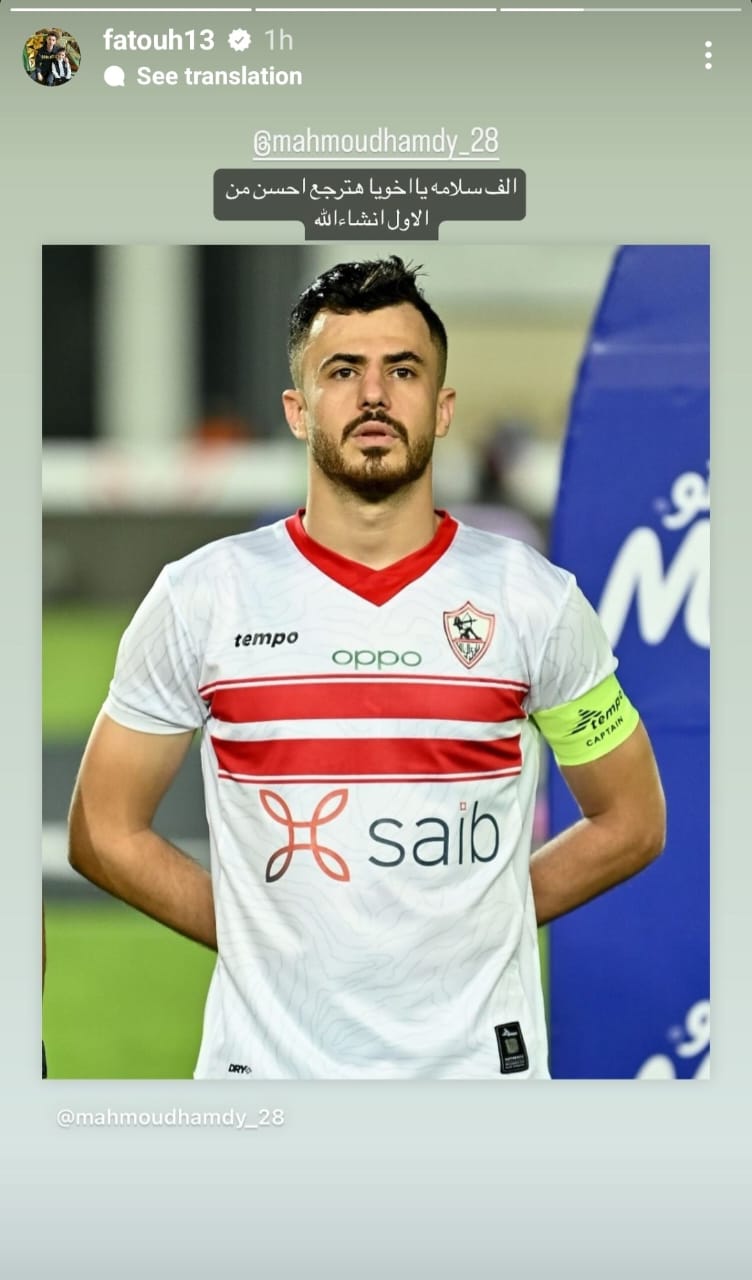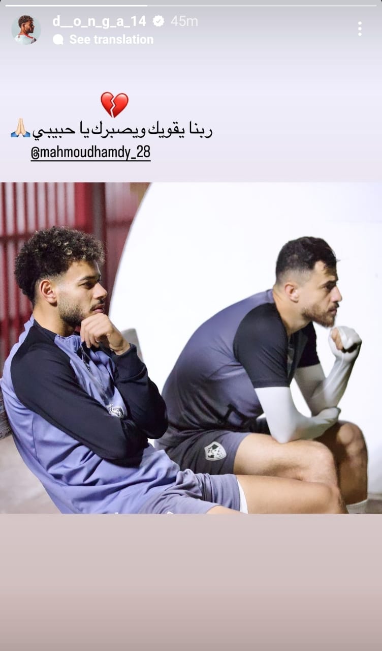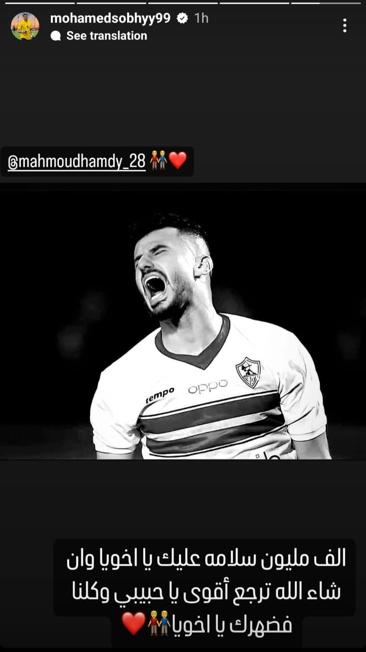 حرص لاعبو الفريق الاول لكرة القدم في نادي الزمالك على دعم محمود حمدي الونش مدافع الفريق بعد إصابته بـ الرباط الصليبي.