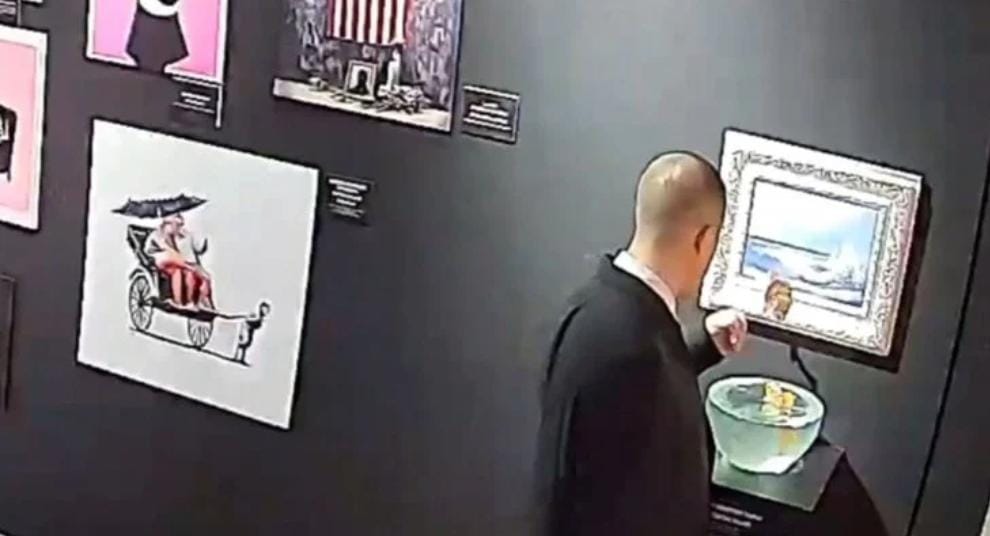 بدأ حارس الأمن في سب السمكة المزيفة في مشهد غريب من نوعه، وحاول أن يأكل منها، وعندما تمت مواجهة الرجل بسلوكه، هز كتفيه ببساطة وقال إنه قضى ليلة صعبة مع القليل من النوم، ولم يفهم ما كان يفعله عندما حاول تخريب القطعة الفنية.