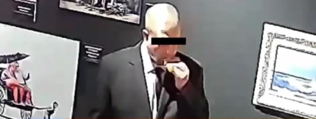 عملية تخريب غريبة.. حارس أمن يأكل قطعة فنية بمعرض روسي