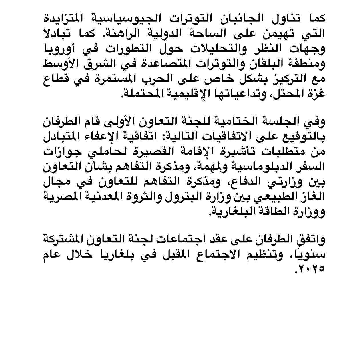 بيان مشترك حول الاجتماع الأول للجنة التعاون بين مصر وبلغاريا