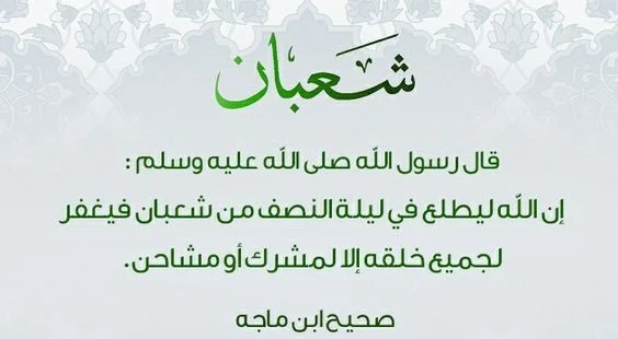 - فضل ليلة النصف من شعبان، استنادًا لقول النبي صلى الله عليه وسلم: "إِنَّ اللَه تَعَالَى لَيَطَّلِعُ فِي لَيْلَةِ النِّصْفِ مِنْ شَعْبَانَ، فَيَغْفِرُ لِجَمِيعِ خَلقِهِ إِلَّا لِمُشْرِكٍ أَوْ مُشَاحِنٍ" رواه ابن ماجه وحسنه الألباني.